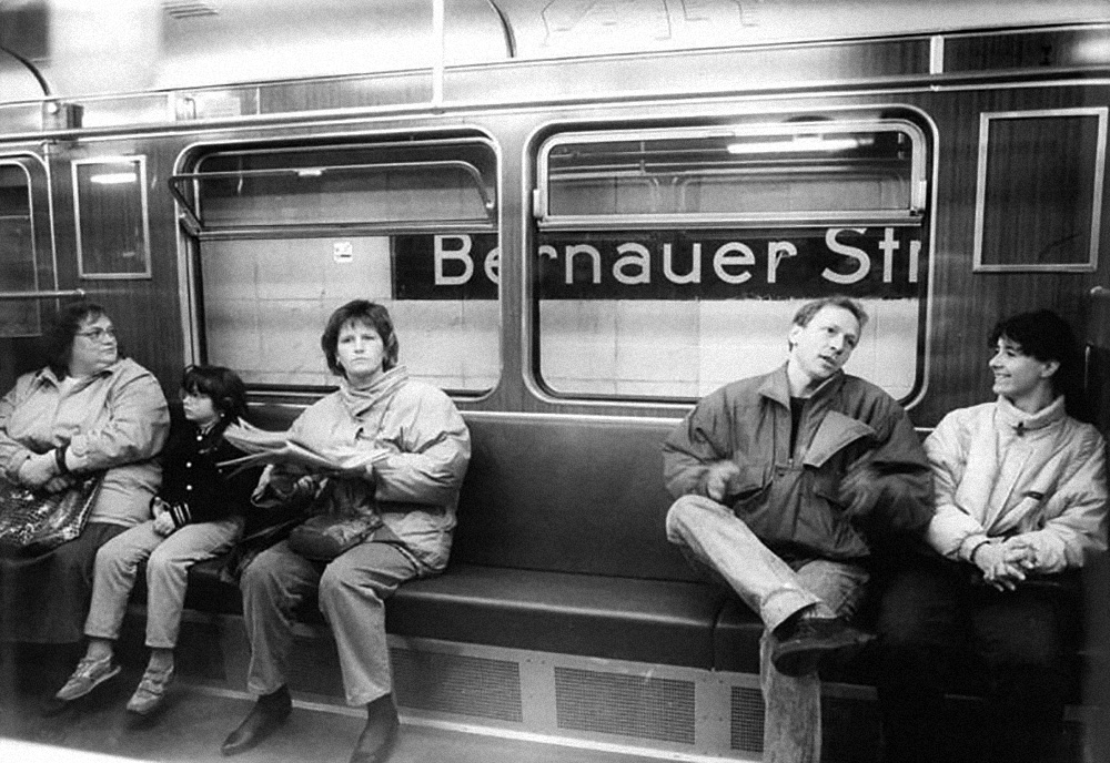Bernauer Straße, reopening of a so-called ghoststation closed while the Wall was separating east and west-Berlin, 12 April 1990, Photography by Thomas Uhlemann.