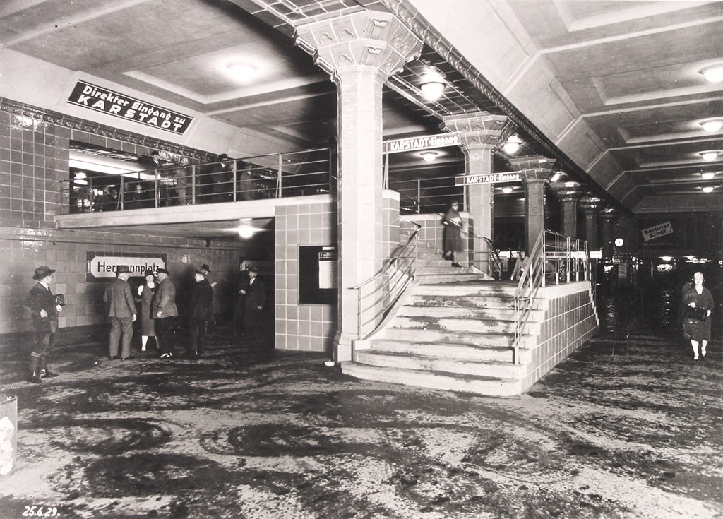 Hermannplatz station with direct entrance in the Karstadt department store, 1929.