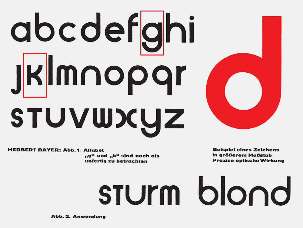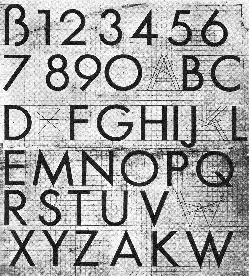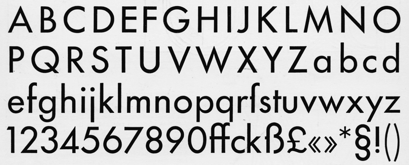 Alphabet (1925) and groundbreaking geometric sans serifs like Erbar Grotesk (Jakob Erbar, Ludwig