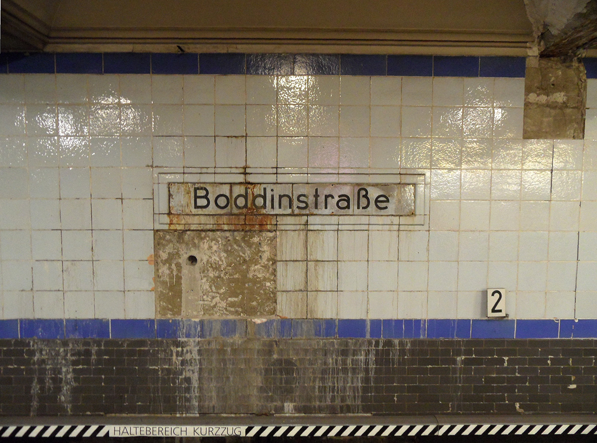 Berlin Underground station signs from the U8 and U7 lines. Rosenthaler Straße and Boddinstraße by Ingolf, Flickr.